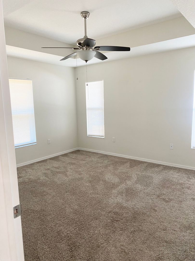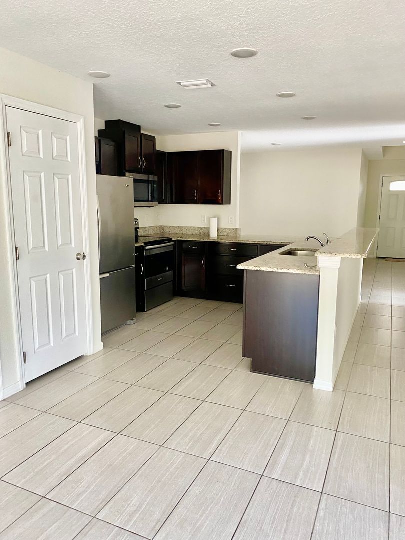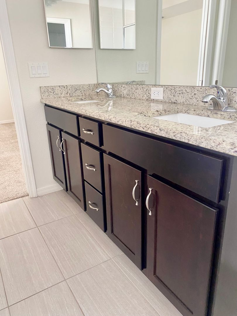 LIKE NEW Custom home available for immediate occupancy. Lots of UPGRADES including gorgeous kitchen with GRANITE countertops, STAINLESS STEEL APPLIANCES, Breakfast Bar, Wood cabinets. PORCELAIN TILE in kitchen, baths & entry. Primary Bedroom has Trey ceiling, Private Bath, walk-in shower, double vanity, Large closet. Bathrooms have GRANITE top vanities plus additional vanity in Laundry Room. Sliders to private backyard. Sorry NO PETS! First, Last & Security required. Video security devices may be in use.